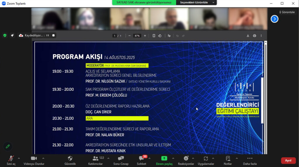 14.08.2025 Tarihinde SAK Değerlendirici Eğitimi Çalıştayı gerçekleştirildi. Eğitim programına farklı üniversitelerden 120’nin üstünde akademisyen katıldı.